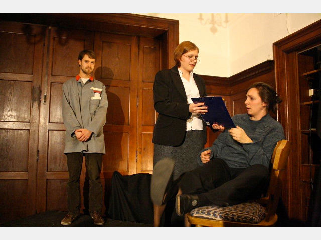 Konkret wurde das am Beispiel einer alleinerziehenden Mutter (gespielt von Anja Arndt-Grundei): In Trennung lebend, muss sie die große Wohnung nun allein bezahlen und sich allein um ihre Kinder kümmern. Ihren Job hat sie verloren, weil sie aufgrund ihrer Kinder für den Beruf nicht in dem Maße „flexibel“ sein konnte, wie es der Arbeitgeber verlangte. Jetzt wendet sie sich ans Amt und beantragt einen Mietzuschuss und einen Zuschuss für das Schul-Mittagessen der Kinder. Doch das dringend benötigte Geld lässt zwei Monate auf sich warten.