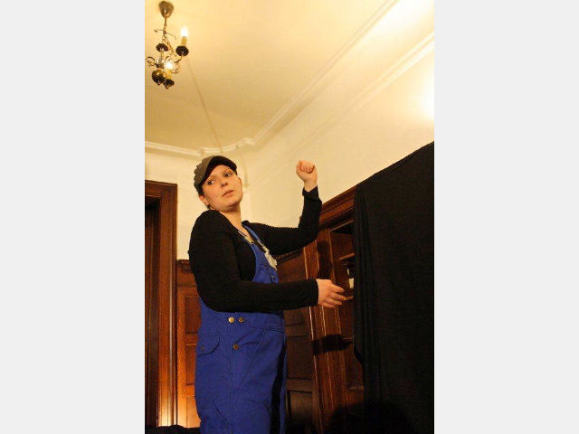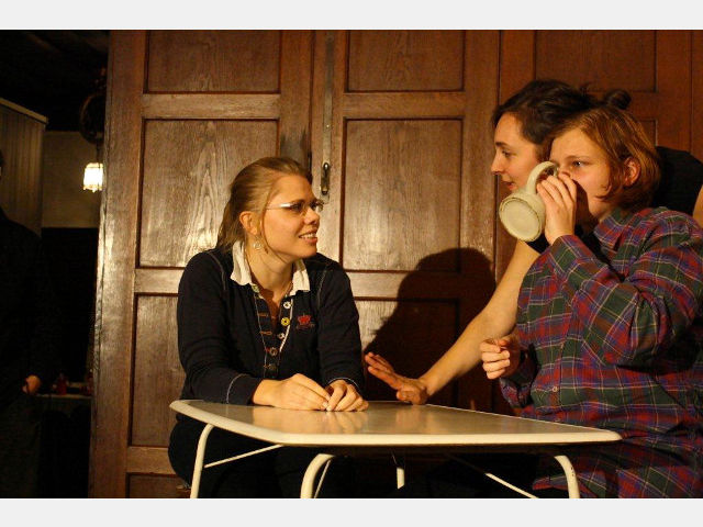 ➤ Auf der Bühne wirkten mit: Anja Arndt-Grundei (Mutter), Marion Reitinger (Vorarbeiterin, Gerichtsvollzieherin, Stammtischbruder), Maximilian Högl (Leiharbeiter/Arbeitsloser, Arzt), Stefanie L. (Bankangestellte, Frau des Leiharbeiters), Karolina Müller (Schulsozialarbeiterin, Jobcentermitarbeiterin, Flaschensammlerin/Rentnerin).
