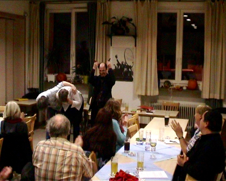 PLOMMBERG: Merkel und Schröder waren ein Herz und eine Seele. Bis in die Morgenstunden haben sich gegenseitig Brechts Texte vorgelesen und die Bäuche gehalten. Die waren wie kleine Kinder, die endlich ihr Traumspiellzeug bekommen haben. Diese Zweisamkeit wird uns allen unvergessen bleiben und hat die ganze Gruppe geprägt.