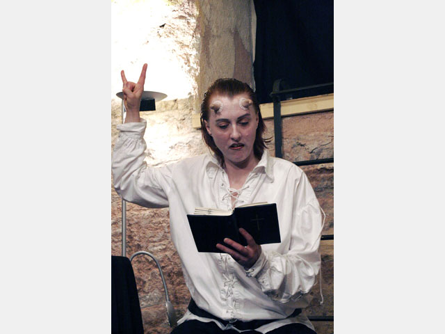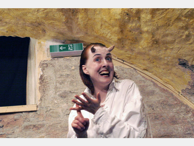 Das ueTheater geht in seinem neuen Stück "Solo für den Teufel" dieser Frage auf den höllischen Grund. Satan, in Fleisch und Blut dargestellt von Martina Reitz, führt die Zuschauer genüßlich durch die Tiefen und Untiefen der theologischen Gedankengebäude. Warum bestraft Beelzebub Sünder, statt sie zu belohnen? Wer erschuf die böse Schlupfwespe? Was hat Gott gegen Analverkehr? Satan oder Gott: Wer war zuerst da? Was hat der arme Feigenbaum dem Erlöser getan, daß dieser ihn verfluchte? Schließlich: Warum wurde das große Erlösungsspektakel überhaupt inszeniert?