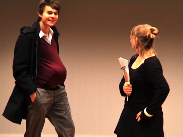 Nach der Pause wurden drei Szenen - „Professor und Dozent“, „Sie schoppen doch immer die ganze Zeit!“ und „Prüfung“ angespielt und dann dem Publikum die Möglichkeit gegeben, die Szenen und Dialoge zu verändern. Dabei kamen ausgeprochen kreative Lösungen zustande, die auch aufzeigten, welche Prioritäten die Eingreifenden setzten – etwa bei der Vergabe des Deutschlandstipendiums. Hier wurde etwa der studentische Vertreter ersetzt und die Eingreifende setzte sich tatkräftig und nach allen Regeln der rhetorischen Kunst für die Philosophiestudentin ein, um bei der Rüstungsfirma die Gelder locker zu machen. Ein anderer Zuschauer ersetzte den Rektor und versuchte in eine andere Richtung zu lenken. Die Szenen waren eine faszinierende Herausforderung für alle Beteiligten!