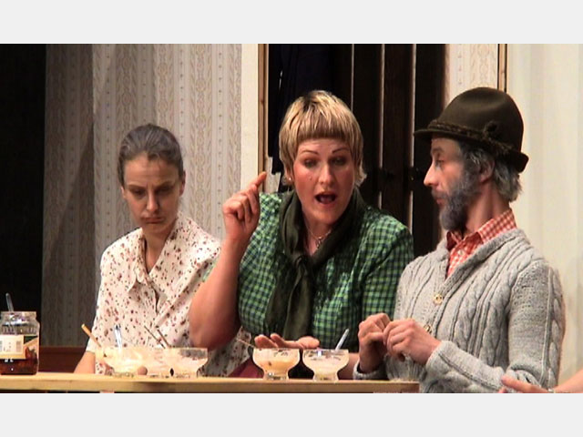 Das Leben der Hubers verläuft, ebenso wie das Stück, ohne Höhepunkte. Die Figuren verharren in Erstarrung. Mit lebensnahen pointierten Dialogen und einem wunderbar realistischen Bühnenbild läßt das Ensemble die Zuschauer an den Alltagszenen der Familie - zu der noch die Schwester Sieglinde (Barbara Schmid) und deren Ehemann (Stefan Hofmarksrichter) sowie Lisbeth (Christina Schauer), die Frau von Franz, gehören - teilhaben.