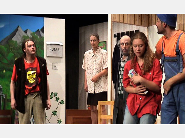 Hansi wurde von der Mutter (Stephanie Burgstaller) schon immer verhätschelt. Er darf studieren, doch er beschäftigt sich vor allem mit dem Hunger in der Welt und Umweltsünden. Er holt zum Rundumschlag aus, startet im Che-Guevara-T-Shirt sein Projekt Familienerneuerung, indem er den Eltern Erich Fromms "Die Kunst des Liebens" schenkt und seinen Bruder zum ökologischen Landbau drängt. Hansi ist Idealist, er trägt plakativ die Nöte der Welt vor sich her und wettert gegen die Geldgier, was ihn aber nicht abhält, leidenschaftlich mit dem Bruder um das alte Wohnhaus zu streiten, das die Mutter diesem überschreiben will. Vater Franz Huber Senior (Stefan Glufke) sitzt zwischen allen Stühlen und leidet unter dem Pantoffel der Mutter.