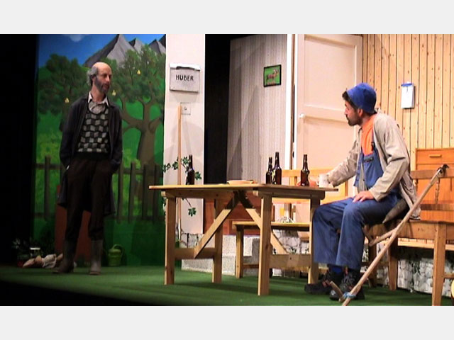 Das Stück dauert keine zwei Minuten, da fängt der Hoferbe Franz Huber Junior (Frank Schmid) an, mit seiner Mutter zu streiten, und Mißgunst, Haß und Zank werden zwei Stunden lang nicht mehr aufhören. Erst recht, als der jüngste Sohn Hansi (Hans Camin) mit seinem Sohn Korbinian (Georg Grabmair) und Lebensgefährtin Monika (Christine Oßwald) den elterlichen Hof besucht.