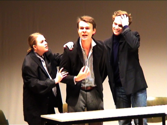 Ein schauspielerisches Highlight der Aufführung: Eine Szene, in der eine Prüfungssituation dargestellt wird. Colloquium: Zwei Studentinnen und ein Student werden von ihrem Professor zur pädagogisch-psychologischen Diagnostik geprüft. Die offensichtlich gut vorbereitete Studentin klagt über große Bauchschmerzen und bricht schließlich unter den herablassenden Blicken und egoistisch-unverschämten Kommentaren ihrer Mitprüflinge weinend zusammen. Der Prüfer tut es als lächerlich ab und fragt die Studentin mehrmals, ob sie nicht lieber zugeben wolle, dass sie nicht gelernt habe. Schließlich soll sie das Büro verlassen und einen Arzt aufsuchen. „Wenn sie diese schauspielerische Leistung wiederholen können...“ Empathische Blicke aus dem Publikum, die jedoch zugunsten der nächsten Szene lauten Lachern weichen. Zum CanCan von Offenbach machen sich sechs StudentInnen auf zu einer Reise nach Jerusalem. Aufgeregtes Laufen um einen Stuhl, auf dem der „Letzte Masterplatz“ ausgeschrieben ist.
