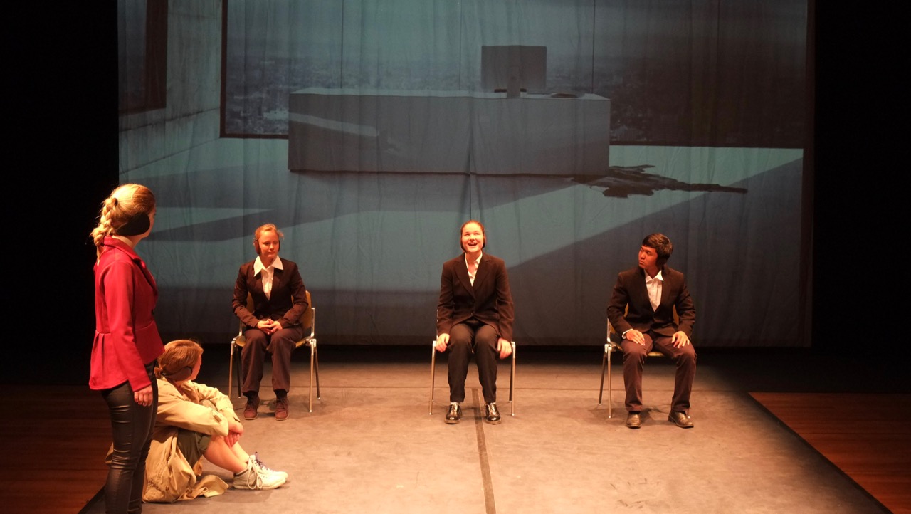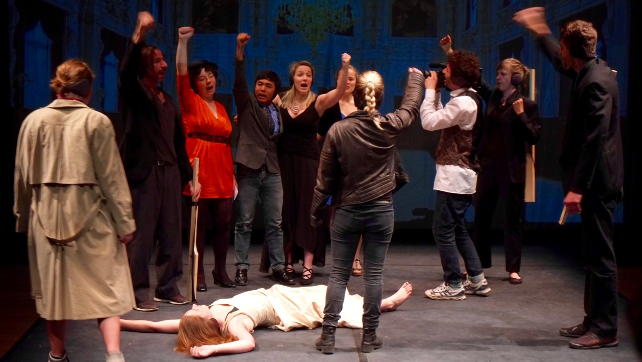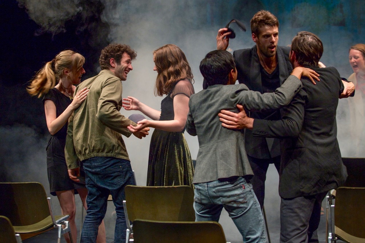 Bei allem Theater um das Theater geht fast unter, welch kreative Energie in dieser Truppe steckt. Diesmal wagen sich die Studierenden in den Weltraum. Die Kurzgeschichte „Im Namen des Drachen“ des Polen Stanislaw Lem erzählt von den Abenteuern des Raumfahrers Ijon Tichy. Er bekommt davon Wind, dass ein gefräßiger Tyrann den Planet Abrasien bedroht. Ein gigantischer Drache herrscht, frisst und wütet dort. Doch jeder huldigt ihm und wirft sich ihm zu Füßen. Tichy begibt sich also nach Abrasien, um den Dingen auf den Grund zu gehen.