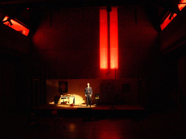 Die Twin-Towers werden als rote Lichtbalken an die Theaterrückwand projeziert.